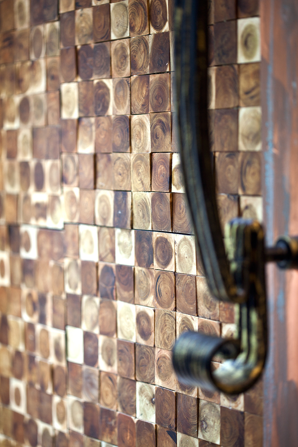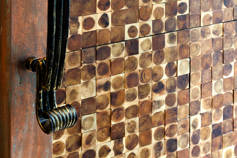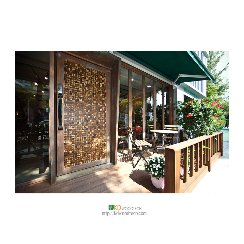 4. 우드 모자이크 타일 MIGUEL DOTS를 붙여서 제작한 현관 도어