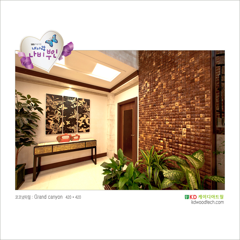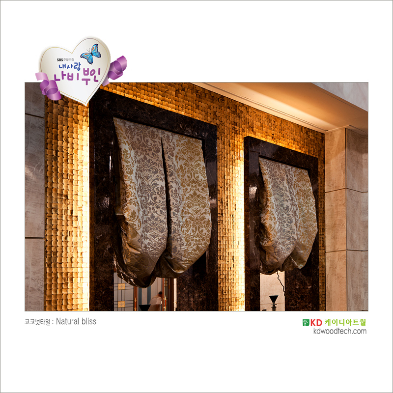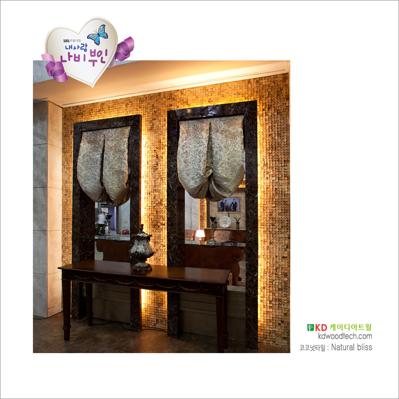 (주)케이디우드테크의 코코넛 모자이크 타일 등 아트월이 협찬되었습니다.