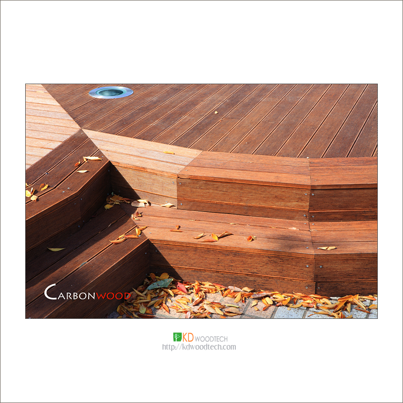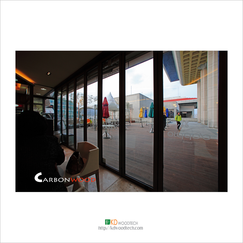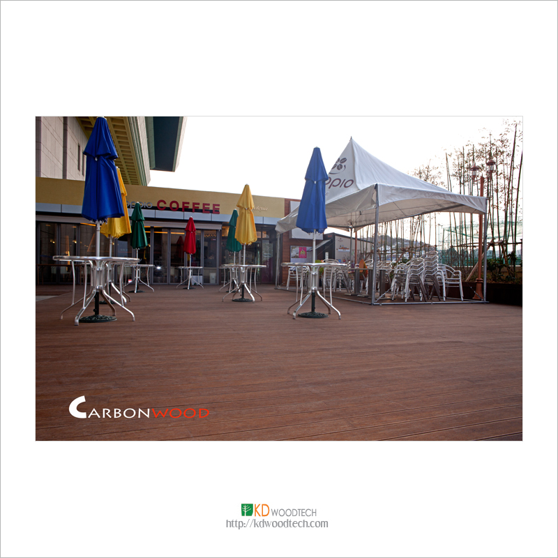 부산 문화회관 야외 데크설치공사 카본우드 데크 20mm