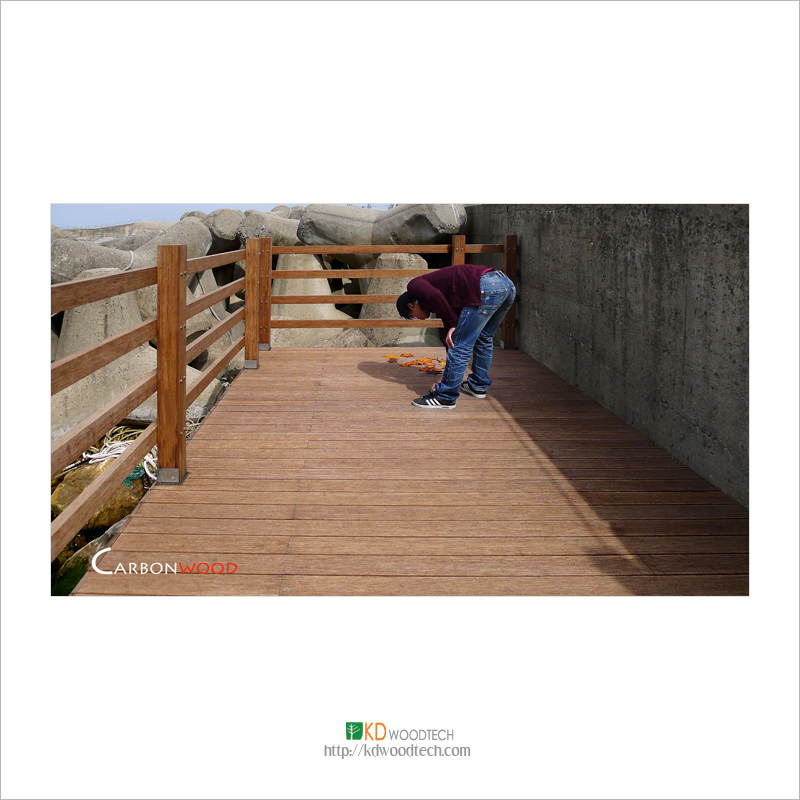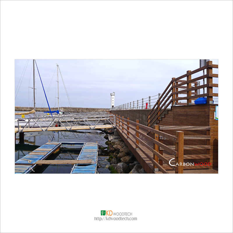 장소 : 강원요트조종면허시험장 데크 및 난간 설치공사 재료 : 카본우드 데크재 두께 20mm 카본우드 기둥재 100mm x 100mm 카본우드 난간재 40mm x 85mm