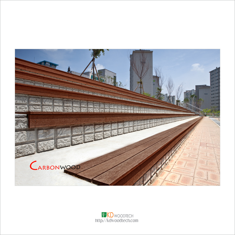 스탠드 설치공사 (원주 만대초) 카본우드 데크 20mm 기둥재 100mm x 100mm 소기둥재 40mm x 45mm