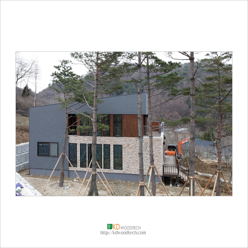 전원주택 외부 목재사이딩 설치공사 충주 SK SKY HOME 카본우드 16MM X 95MM