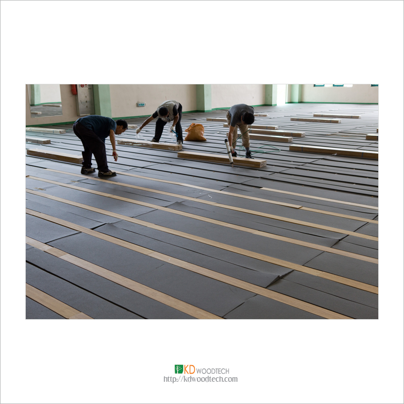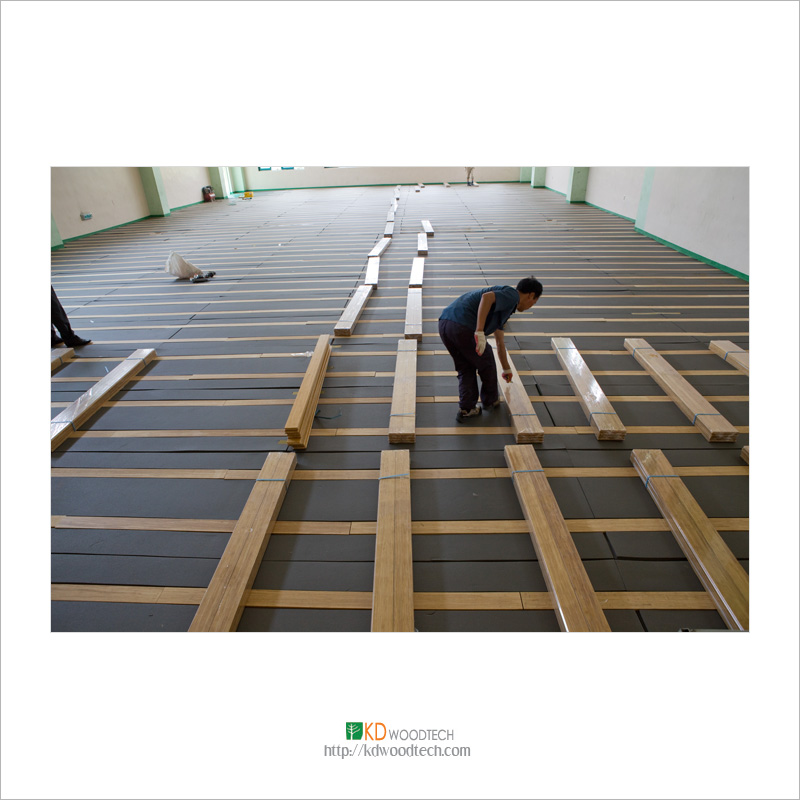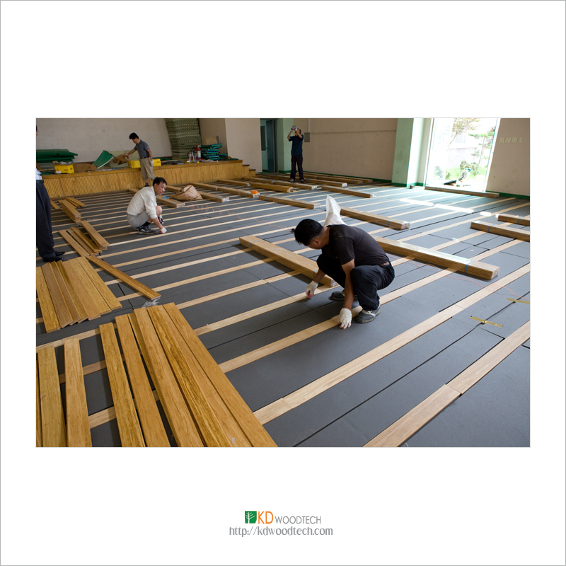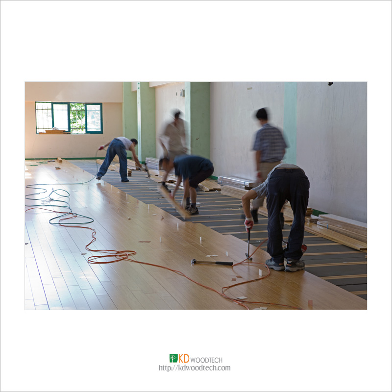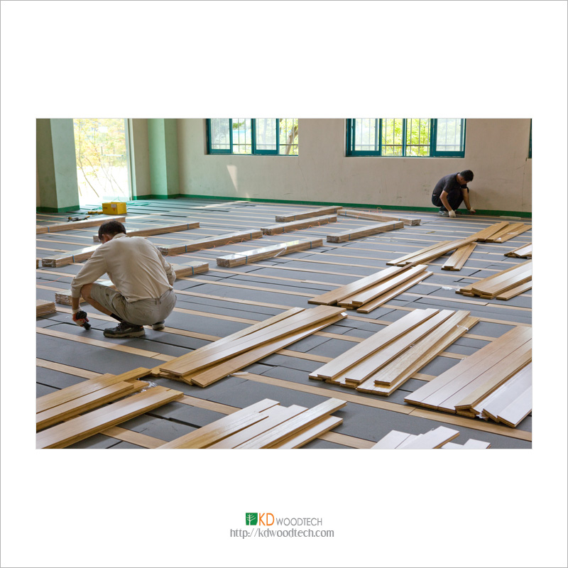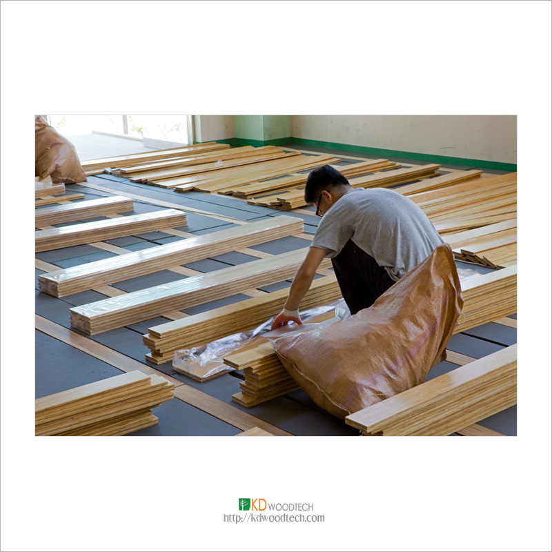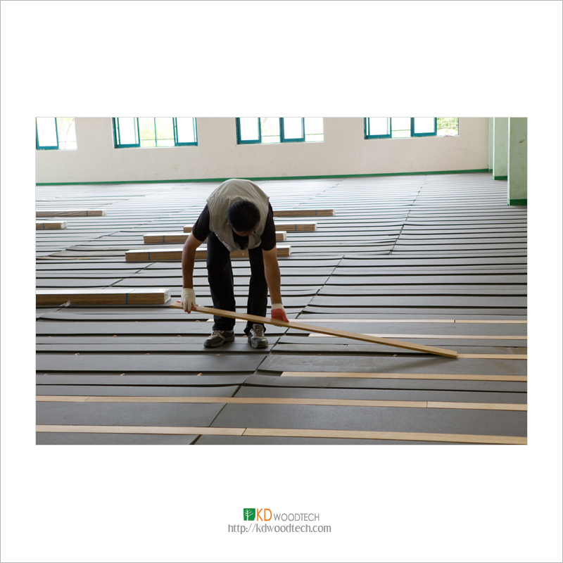 수원 창현고 체육관 설치공사 재 료 : 카본우드 스포츠 플로어링 22mm x 96mm x 1860mm 시스템 : 소음감소충격흡수 마루 시스템 INSORIN D30 SYSTEM