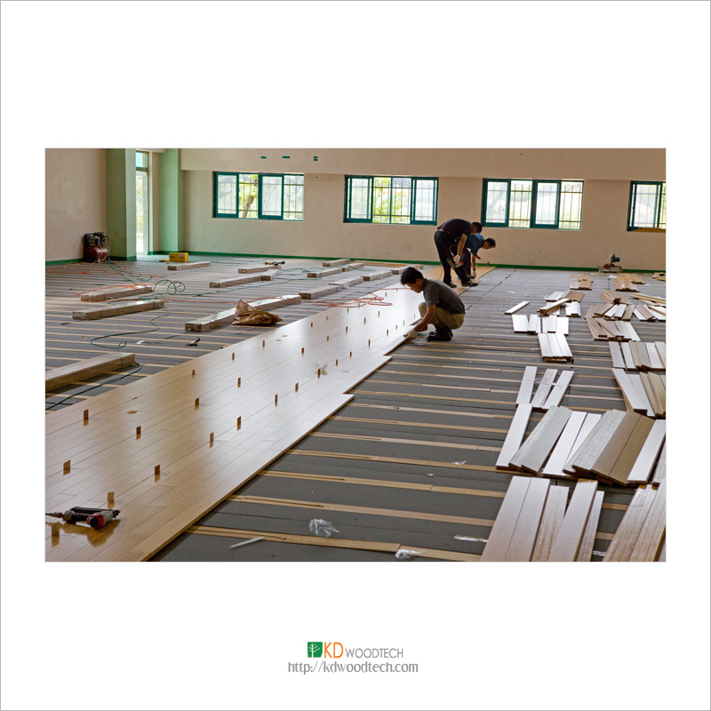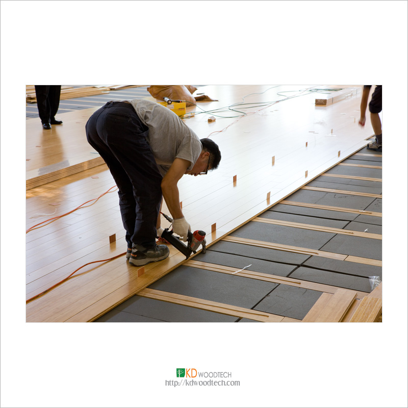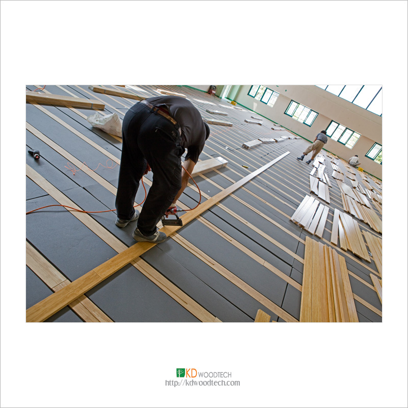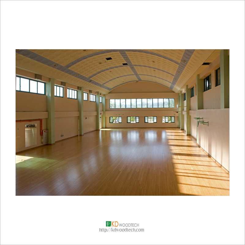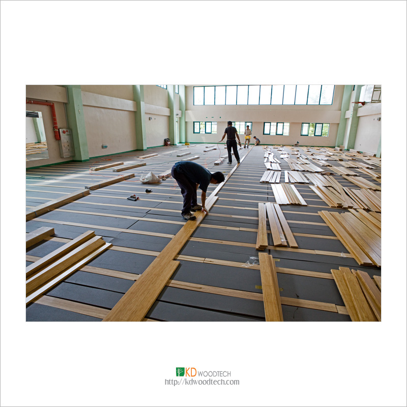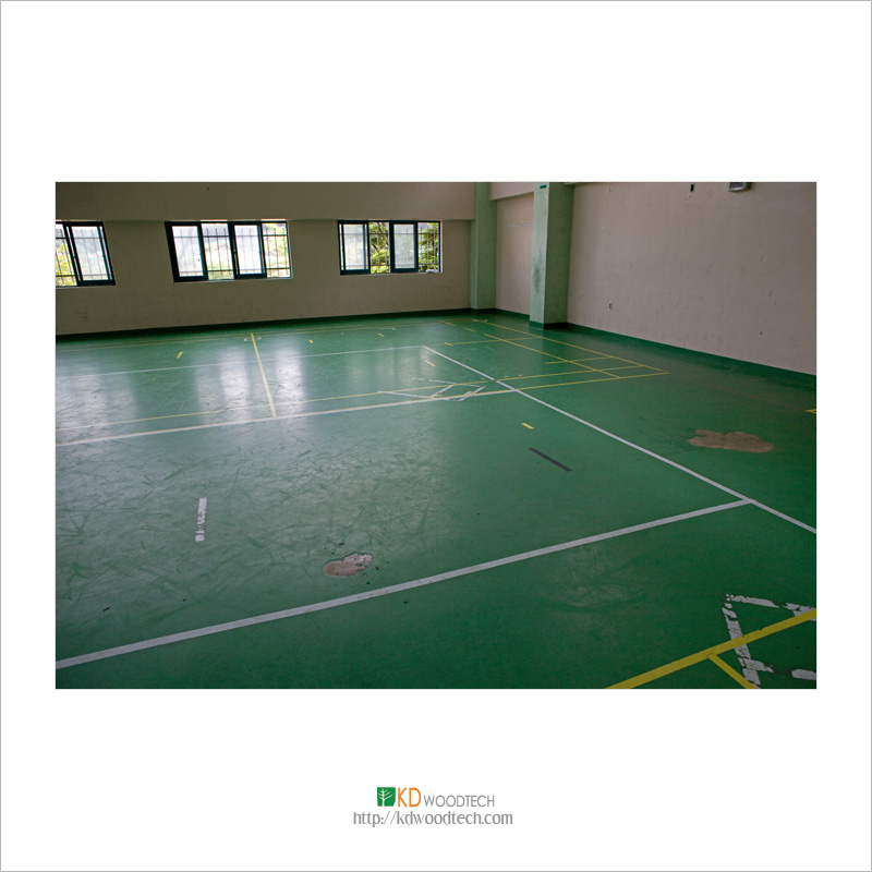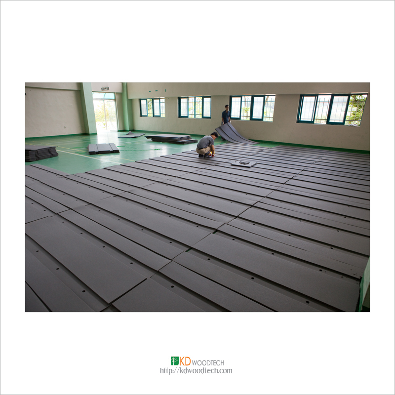 수원 창현고 체육관 설치공사 재 료 : 카본우드 스포츠 플로어링 22mm x 96mm x 1860mm 시스템 : 소음감소충격흡수 마루 시스템 INSORIN D30 SYSTEM